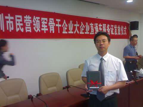 2007年8月,深圳市工贸局依据深圳市政府出台的《关于进一步加快民营经济发展的若干措施》规定,将我公司等61家“民营骨干企业”纳入大企业便利直通车服务名单 糖心视频高清,并于9月27日颁发了便捷服务“绿色通道”。